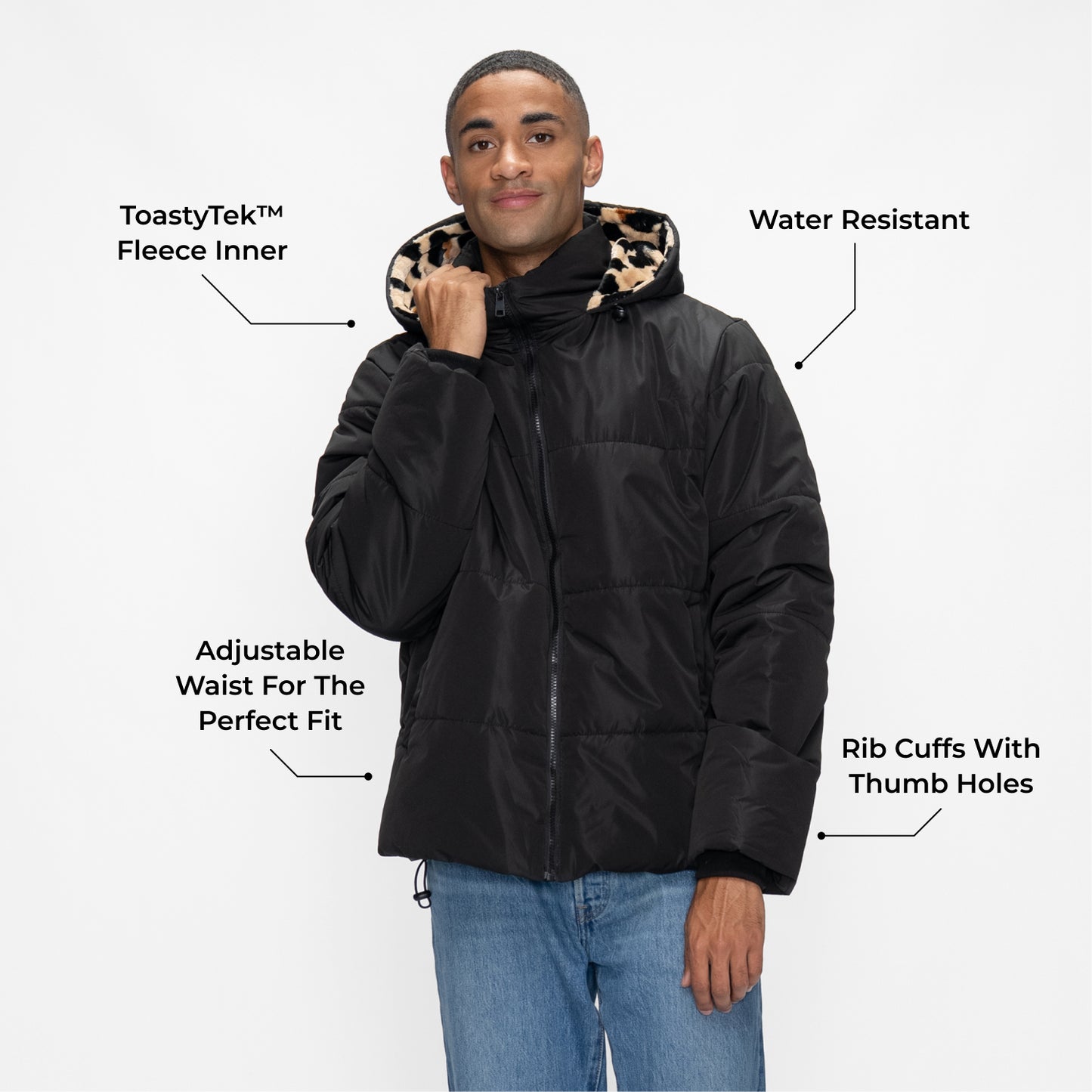 The Puffer Jacket is your everyday essential for cold weather. It's super warm, water resistant, and has our famous ToastyTek™ fleece lining for comfort that lasts all winter. Comes in a unisex fit.